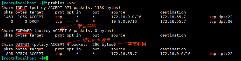 filter, 控制数据包是否允许进出及转发(INPUT、OUTPUT、FORWARD),可以控制的链路有input, forward, output