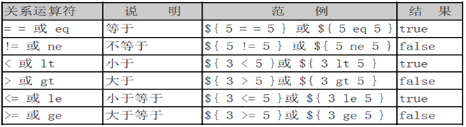 <%@ page language="java" contentType="text/html; charset=UTF-8" pageEncoding="UTF-8"%> <!DOCTYPE html PUBLIC "-//W3C//DTD HTML 4.01 Transitional//EN" "http://www.w3.org/TR/html4/loose.dtd"> <html> <head> <meta http-equiv="Content-Type" content="text/html; charset=UTF-8"> <title>El表达式运算</title> </head> <body> 四则运算 ${10+30 }<br/> ${30-10}<br/> ${30*2 }<br/> ${30/2}<br/> 关系运算符 <br/> 两种写法等价 ${dept5 ==null}<br/> ${dept5 eq null}<br/> <h3>el表达式使用empty运算符检查对象是否为null(空)</h3> ${empty(list)} <h3>EL表达式中使用三目运算符</h3> ${list eq null? "没有这个对象":list[1].name} </body> </html>