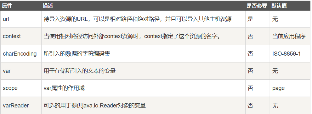 该标签可以把其他静态或动态文件包含到本JSP页面,与<jsp:include>的区别为:<jsp:include>只能包含同一个web应用中的文件。而<c:import>可以包含其他web应用中的文件,甚至是网络上的资源。