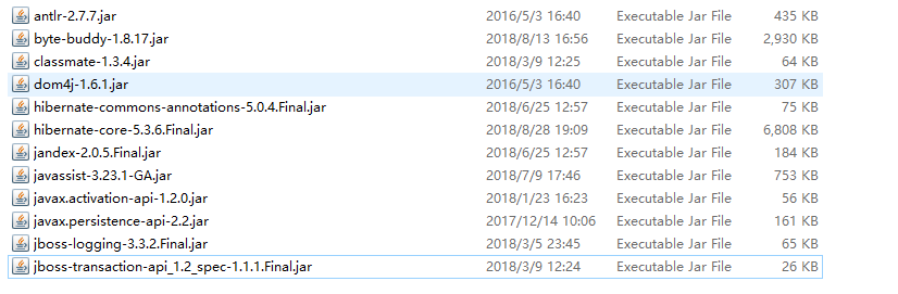 lib文件夹:存放Hibernate编译和运行所依赖的JAR包,其中required子目录下包含了运行Hibernate5项目必须的JAR包