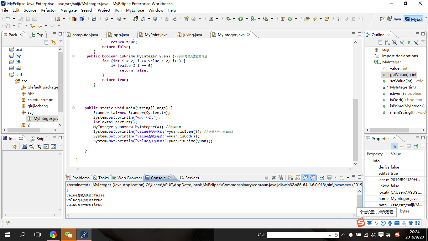 在创建的包里创建了一个类,创建了一个构造方法,进行判断是否为奇数 偶数和素数