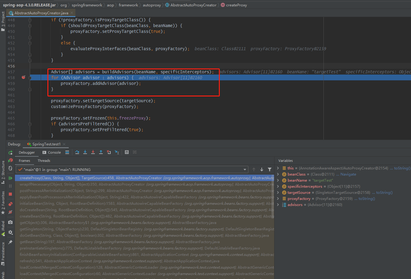 开始寻找config.getAdvisors()顺序规则:最终发现config中的advisors是在Spring启动时AbstractAutoProxyCreator作为BeanPostProcessor(Bean后置处理器)在Bean初始化后进行创建代理时产生