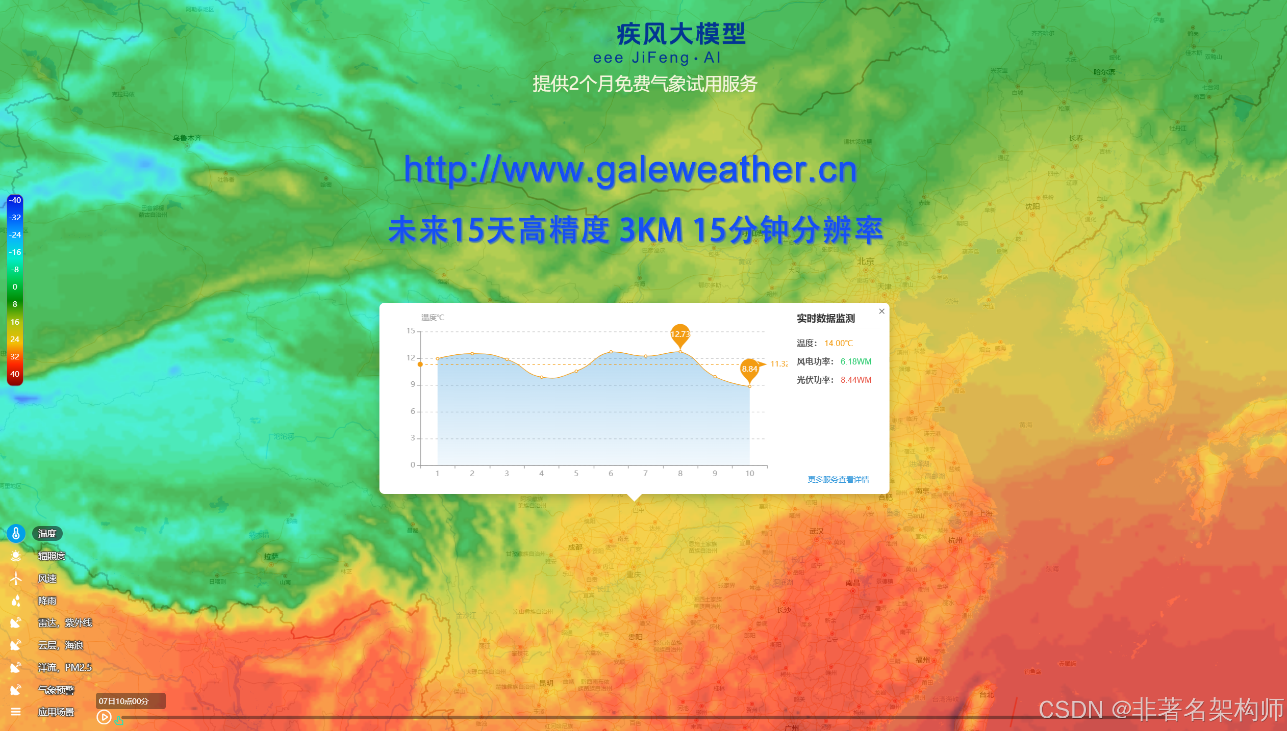 随着人工智能技术的发展,特别是深度学习和大数据的结合,基于 AI 的天气预报模型逐渐崭露头角。这类模型通过分析历史气象数据并学习其模式,能够提供与传统数值天气预报模型类似甚至更优的预测结果,尤其在短期天气预测(如1至2小时的天气预报)中效果显著。
