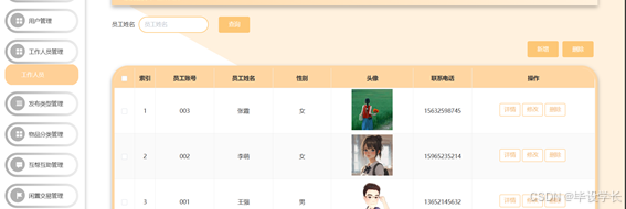 2.员工管理:对员工信息进行增、删、改、查操作,确保员工的及时调配与管理。