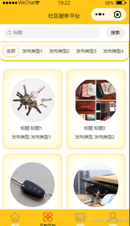 The aim of this project is to design and implement a community service platform based on WeChat mini programs, which can improve the intelligence and convenience of community management. With the rapid development of information technology, community service platforms have become an important component of modern urban development. Using mini programs as a convenient mobile platform can better meet the daily and management needs of residents, improve community service efficiency and management level, and promote the digital transformation of communities.