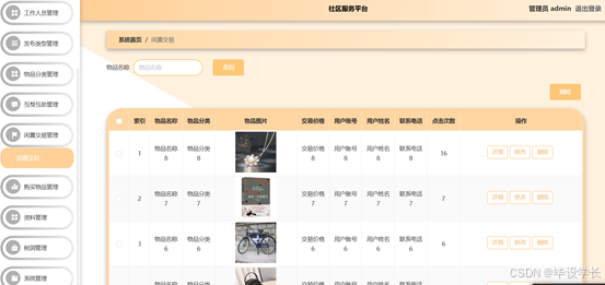 本研究通过对当前社区管理现状的分析,发现传统管理方式在信息传递、资源共享、居民互动等方面存在诸多不足。为了提升管理效率和服务质量,社区管理亟需借助信息化手段来优化资源配置、提升居民的参与感和归属感。基于微信小程序的社区服务平台管理系统,能够利用现代互联网技术与社区实际需求相结合,为社区管理者和居民提供便捷的管理工具与服务平台。系统不仅涵盖了物品分类管理、互帮互助、闲置交易等基本功能,还通过智能化的数据管理和高效的系统架构,提升了社区的整体管理水平。