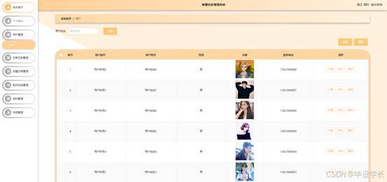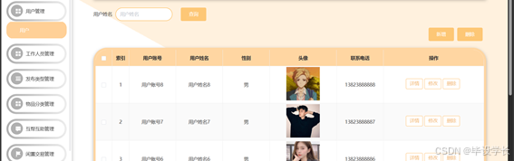 1.用户管理:实现用户的新增、删除、修改和查询功能,便于管理员管理系统中的各类用户信息。