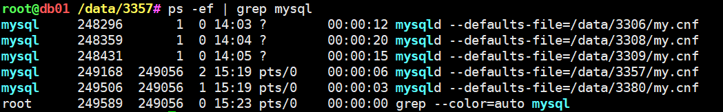mysqld --defaults-file=/data/3357/my.cnf &