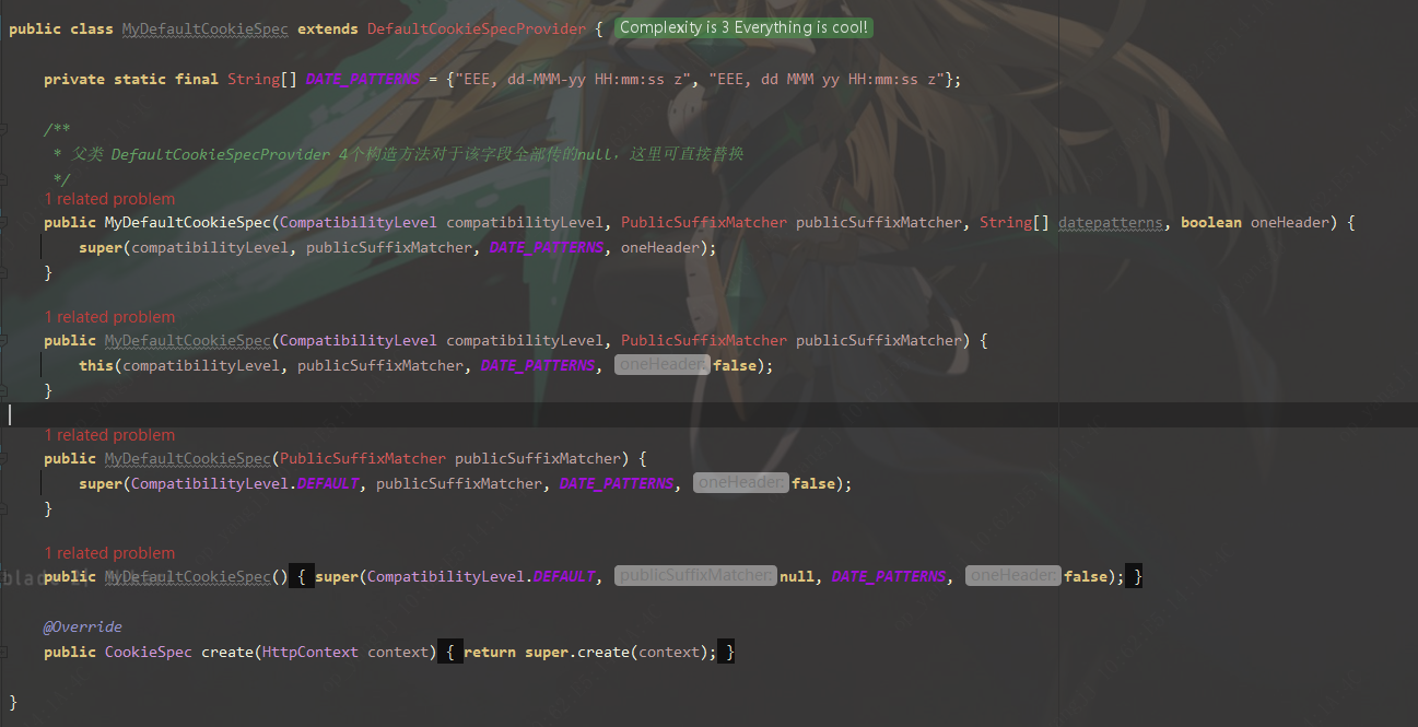 直接自定义个MyDefaultCookieSpec去继承默认的DefaultCookieSpecProvider,所有实现全部使用父类的,就是在构造方法里加入自定义扩展的解析时间格式类型,这样有利于后续拓展