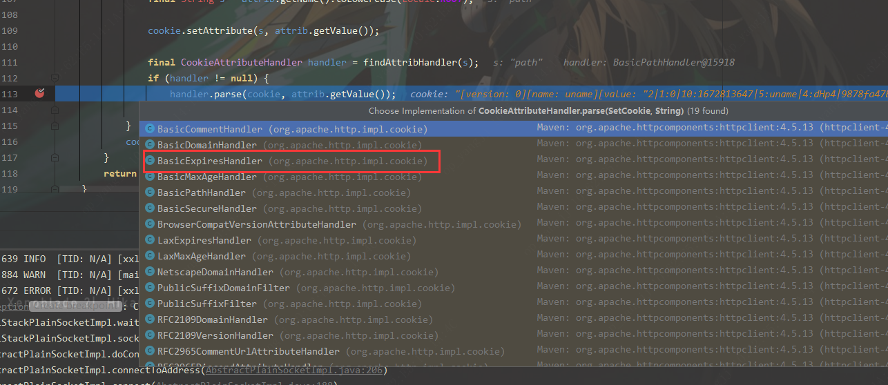 到这里,区分是使用什么cookie属性处理器了,我们既然知道了expires属性有问题,直接进入BasicExpiresHandler