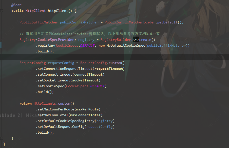 然而CookieSpec只是个接口,有多个实现,哪个出现的问题的,在不知道的情况下直接DEBUG查询,得知使用的是DefaultCookieSpec