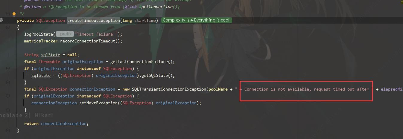 从报错信息中可以看出,是在获取数据库连接时超时抛出的异常,如图