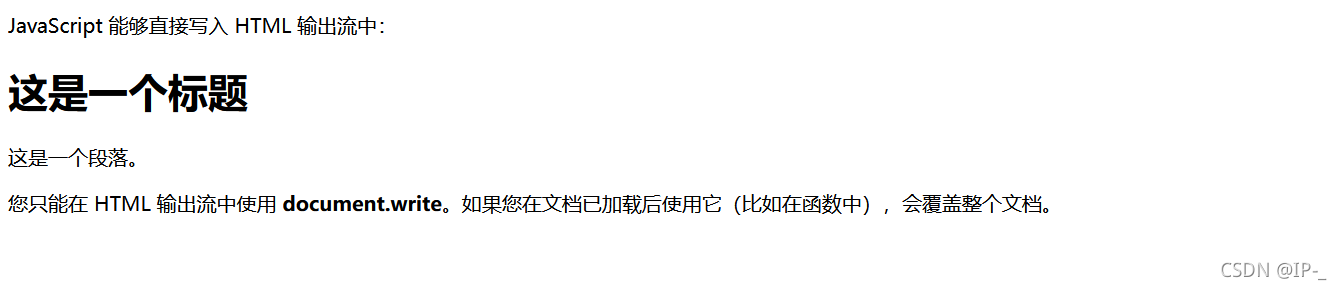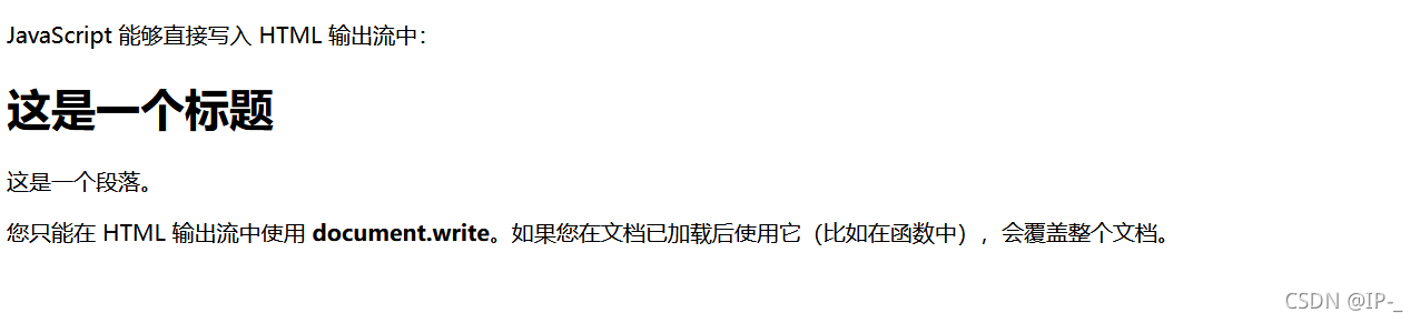 在本例中,JavaScript 会在页面加载时向 HTML 的 <body> 写文本: