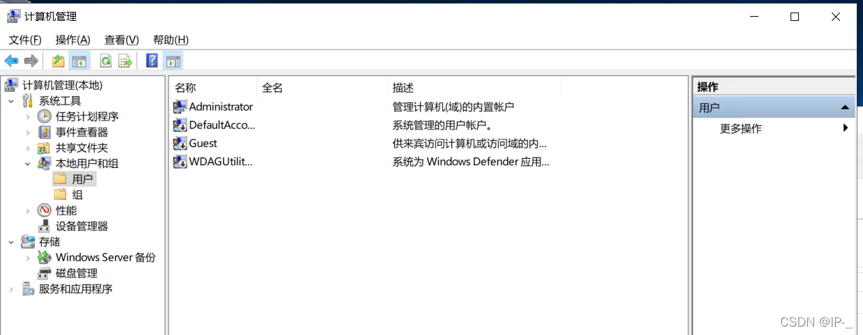 打开 计算机 > 管理 > 本地用户和组 > 用户中,根据您的业务要求设定不同的用户和用户组,包括管理员用户、数据库用户、审计用户、来宾用户等。