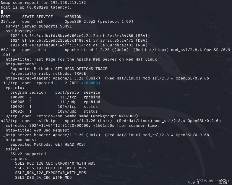 nmap --script=vuln -p22,80,111,139,443,1024 -oA nmap/vuln