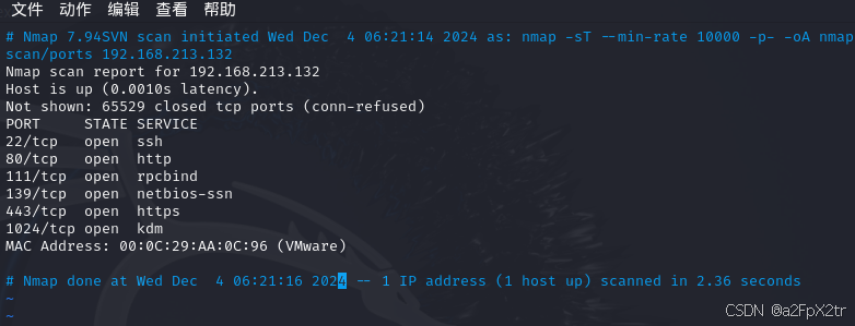 nmap -sT --min-rate 10000 -p-192.168.213.132 -oA nmapscan/ports