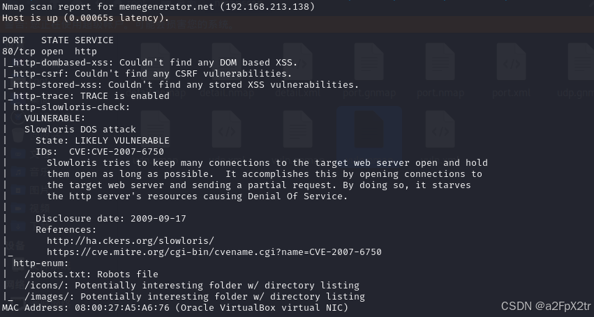 nmap --script=vuln 192.168.213.138 nmapscan/vuln