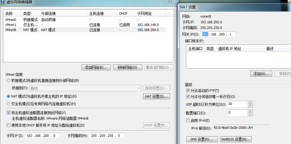 IPADDR=192.168.200.100 (必须在200网段 的IP地址 100随便设)