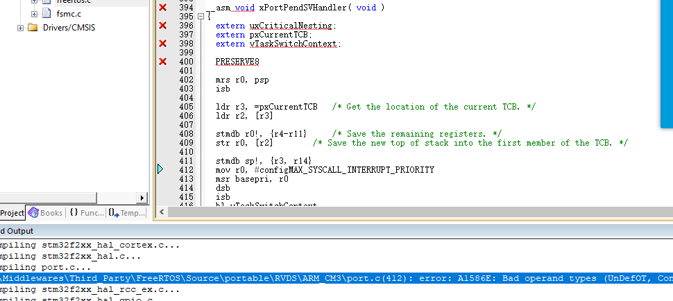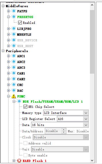 (1)在使用FSMC作为LCD接口时,同时ENABLE了FreeRTOS,发现生成的工程文件,编译之后会出问题。