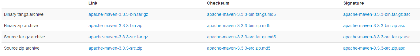 从Maven官网中下载,我用的是3.3.3版本的。官网地址:http://maven.apache.org/download.cgi 进入官网后你会看到下图这样: