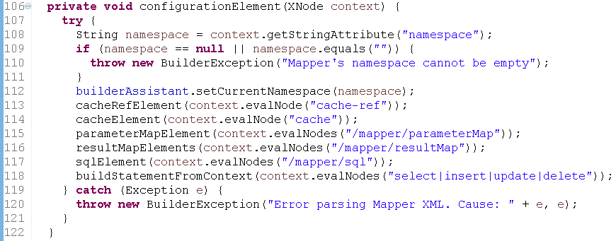 上面负责解析的每行代码都是一个内部方法,比如解析select|insert|update|delete元素的方法: