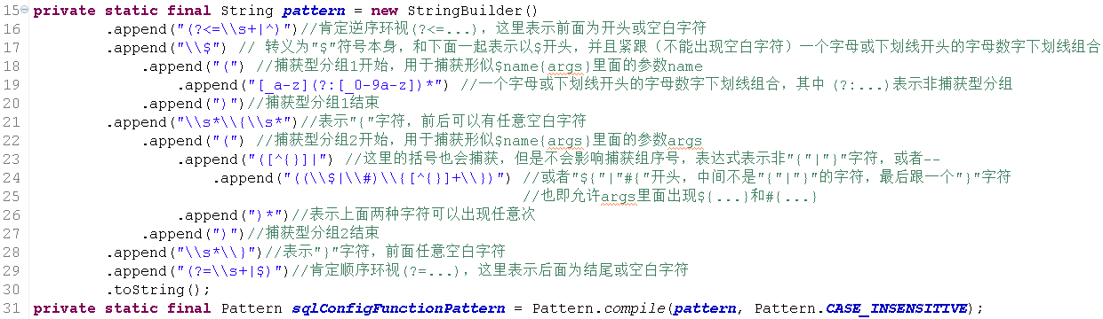 (2)SQL配置函数形如 $fn_name{args},其中函数名是字母或下划线开头的字母数字下划线组合,不能为空(为空则是mybatis原生的字符串替换语法)