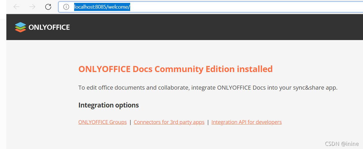 安装完成后输入:http://localhost:8085/welcome/ 页面,说明安装成功。