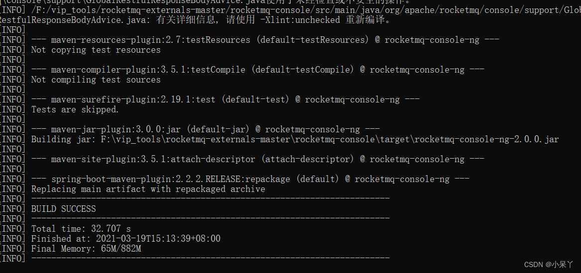 进入‘\rocketmq-externals\rocketmq-console’文件夹,执行‘mvn clean package