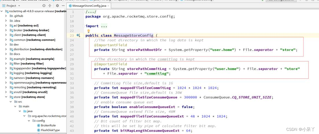 1、修改源码,比如:全局替换 user.home 参数为 mq.store,然后重新打包