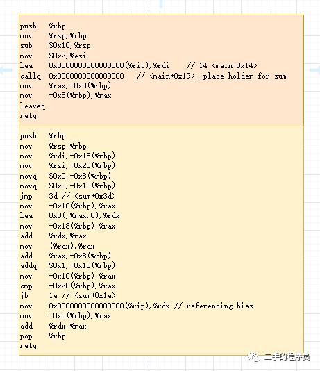 mov 0x0000000000000000(%rip),%rdx // referencing bias