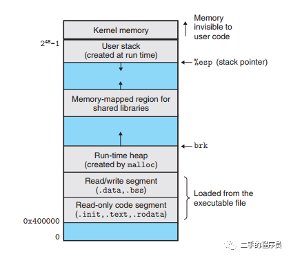 讨论这个问题之前,我们需要搞明白共享库的设计目的,有什么是静态链接搞不定的,非要搞一个动态链接?它的一个主要目的:允许多个正在运行的进程共享内存中相同的库代码。我们看一下程序运行时内存映像:
