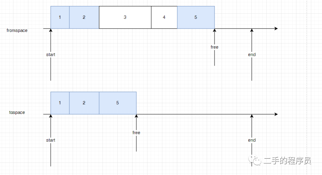 标记-复制其实也是一种整理。只不过有一点不一样的就是,它不需要 forwardingAddress 字段,而且只需要对heap遍历一次。