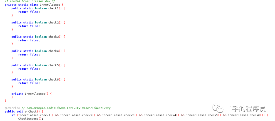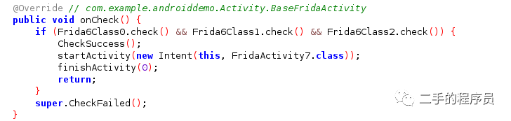 // 注意这里有优化,因为Frida6Class0 固定返回了 false,所以导致 Frida6Class1 没有被加载,所以还是一个个的写比较好