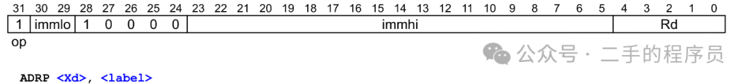 首先adrp将一个21位有符号立即数左移12位,得到一个33位的有符号数(最高位为符号位),接着将PC地址的低12位清零,这样就得到了当前PC地址所在页的地址,然后将当前PC地址所在页的地址加上33位的有符号数,就得到了目标页地址,最后将目标页地址写入通用寄存器。
