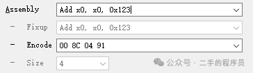 看一个例子,ADR X0, 4 生成汇编指令如下: