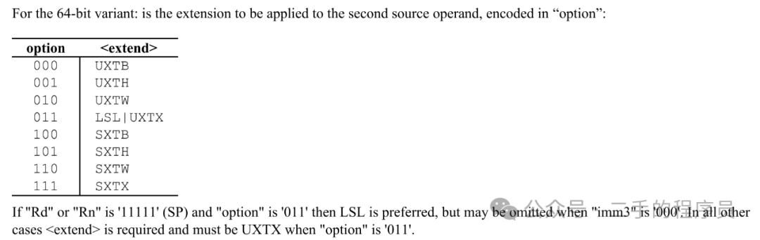 这个指令稍微要复杂一点,它根据 option 的类型,来决定如何对 Xm 寄存器做扩展。