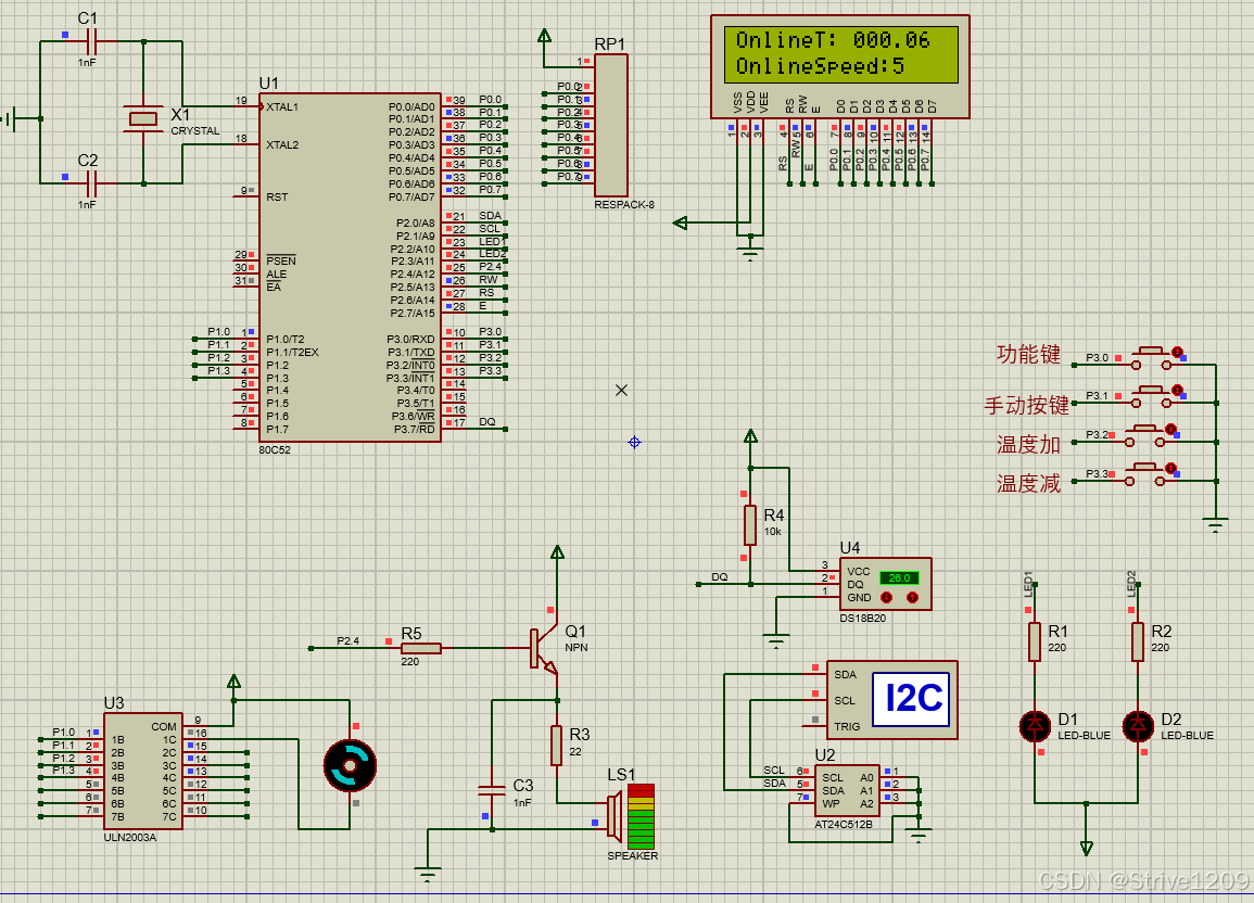 该设计主要使用的元器件有,STC89C52RC、DS18B20、AT24C02、AMS1117-5.0V,LCD1602等。