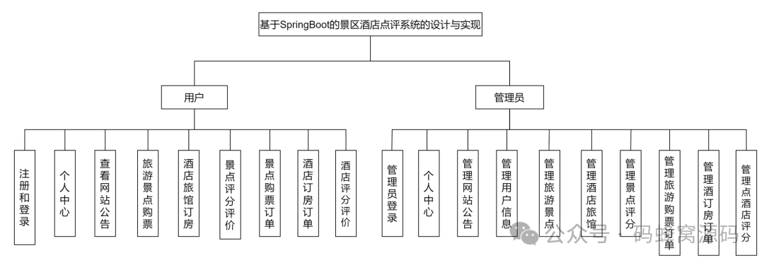 本系统主要功能有:注册和登录、景区管理、酒店房间管理、景区门票购票、酒店房间预定、酒店房间收藏管理、敏感词管理、景区评分、酒店评分、景区推荐、酒店推荐等。