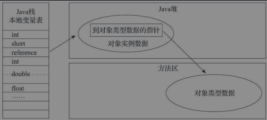 创建对象自然是为了后续使用该对象,我们的Java程序会通过栈上的reference数据来操作堆上的具体对象。由于reference类型在《Java虚拟机规范》里面只规定了它是一个指向对象的引用,并没有定义这个引用应该通过什么方式去定位、访问到堆中对象的具体位置,所以对象访问方式也是由虚拟机实现而定的,主流的访问方式主要有使用句柄和直接指针两种: