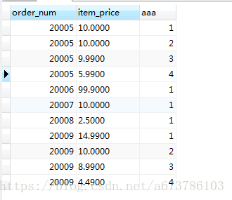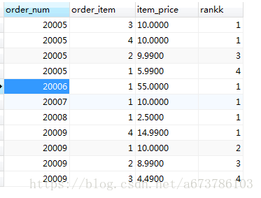 -- 以订单号为分区 按照价格进行排序 rankk为排名