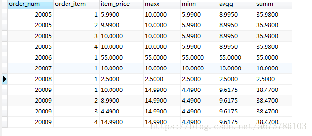 AVG (item_price) OVER (PARTITION BY order_num) AS avgg,