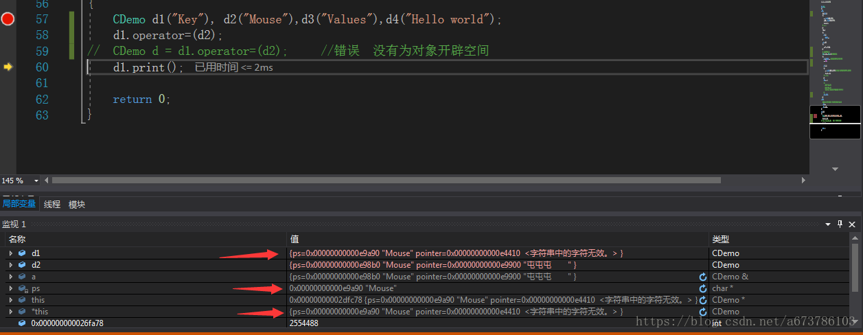 原对象d1 与 ps 与 *this 地址相同 进一步说明this就是对象 只不过习惯被叫做指针