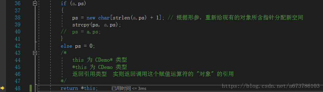 返回引用类型 实则返回调用这个赋值运算符的 "对象" 的引用