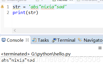 而三个单引号(也是我们之前说过的多行注释,但是赋值的话就变成了字符串),和双引号的就可以分行输入字符,到时候保存的也是分行注释