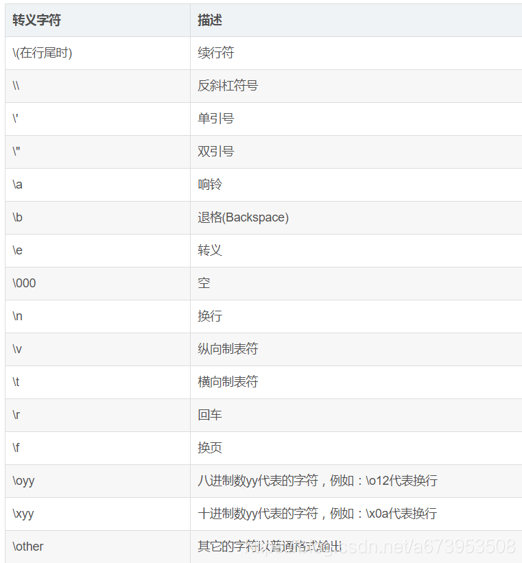 所有的ASCII码都可以用“\”加数字(一般是8进制数字)来表示。而C中定义了一些字母前加"\"来表示常见的那些不能显示的ASCII字符,如\0,\t,\n等,就称为转义字符,因为后面的字符,都不是它本来的ASCII字符意思了。(这句话是百度百科的)