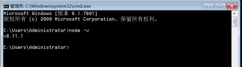 2. 在dos窗口中输入 :node -v 查看,如下图所示表示安装好了