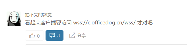 wss配置略微有点曲折,开始是使用域名:端口号作为上游的,后来看到有人说不行,然后自己又在一个wss接口测试网站栽跟头,所以改成了ip:端口号,也不行。然后用小程序测试,测试出错,返回码200,查资料说什么的都有,感觉又都不靠谱,说到这里就要讲到一个题外话了——搜索,做这个项目愈多,愈发现搜索的重要性,我指的是搜索关键词的选取,这个问题我开始的搜索方法是直接搜索错误信息 “Error during WebSocket handshake: Unexpected response code: 200”,搜出来的结果鱼龙混杂,说什么拦截器,stuts,handle什么鬼这是,搜的我怀疑人生,这些东西基本不懂,没听过并且用的部署方案跟我也不同。然后我换了一种关键词序列 “nginx wss 200” ,结果第一个结果就是我要的,这个搜索其实很讲究,描述事件的几大要素——时间,地点,人物,事件,这对关键词占了其三,nginx相当于地点,wss相当于人物,200相当于事件,虽然好像有点扯,但是就是有道理!这样搜索就剔除了之前错误信息的冗余,从一个精准的角度去搜索问题。然后得知之前的location字段那个是指。。。唉说不清楚直接放图