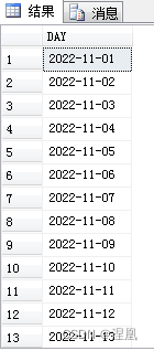 --NUMBER>=0 AND NUMBER<=31 是时间区间 >=0 就是从第一天开始列举