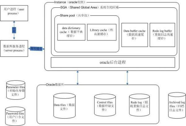 指数据库服务器的内存及相关处理程序,它是Oracle的心脏。与Oracle性能关系最大的是SGA(System Global Area,即系统全局区活共享内存区),SGA包含三个部分: