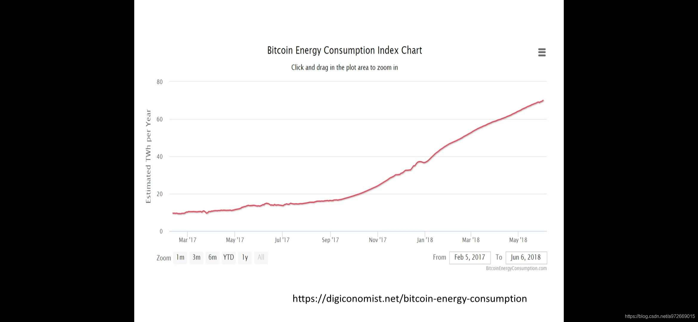 比特币能耗随时间变化的情况:随时间不断增长